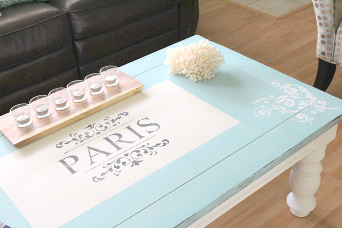 My living room needed a facelift and so I decided to paint the walls with Martha Stewart’s Sea Anemone color. I also added touches of aqua and turquoise to my home décor through textiles, and one of my personal favorites, my garage sale $10.00 table which I refinished and painted in Annie Sloan chalk paint. I also added a touch of France through my drapery panels, which I purchased at Calico Corner. I am so pleased on how my living area turned out and so I decided to share a small part of my personal space with you in hopes that it’ll inspire you.